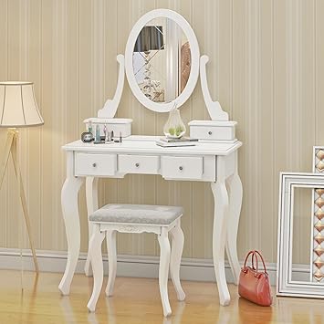 Costway Coiffeuse Table De Maquillage Avec 1 Miroir 1 Tabouret Et