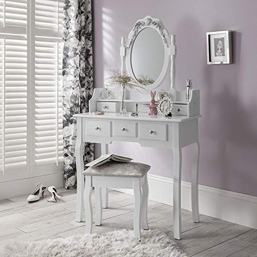 Coiffeuse Avec Miroir Coiffeuse Blanche Coiffeuse Femme 1 Tabouret